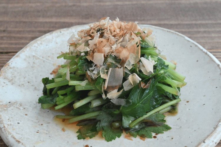 朝採りの三つ葉のおひたしはややえぐく。ニラは口に甘し。