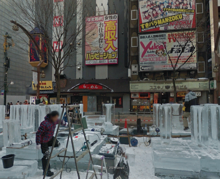 で、一遍ススキノを覗いたろ?ということで、グーグル アースで舞い降りてみると