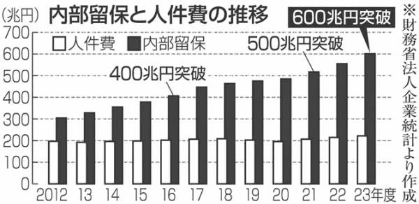 「企業の内部留保」は日本の企業が積み上げてきた巨額の資金であり、約600兆円(あるいはそれ以上)とも言われている。