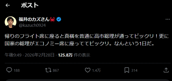 首相が石川県に入るのに、飛行機でエコノミーだったと聞けば、もう噴飯ものですよ。