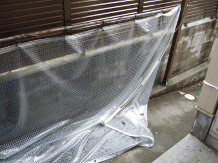 台風被害、風除けシートが落下した!